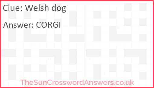 Welsh dog is a crossword clue for which we have 1 possible answer and we have spotted 1 times in our database. This crossword clue was last seen on 01 December 2021 in The Sun Coffee Time Crossword puzzle!