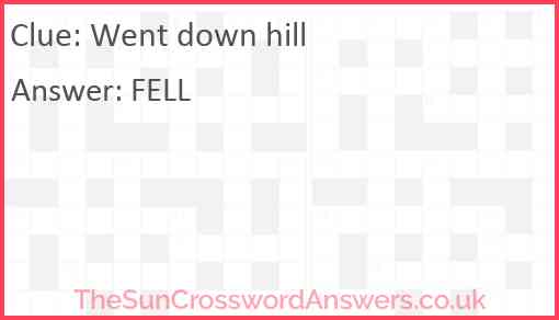 Went down hill is a crossword clue for which we have 1 possible answer and we have spotted 2 times in our database. This crossword clue was last seen on 24 May 2020 in The Sun Cryptic Crossword puzzle!