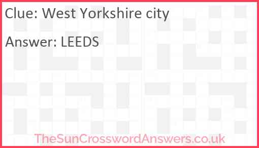 West Yorkshire city is a crossword clue for which we have 1 possible answer and we have spotted 3 times in our database. This crossword clue was last seen on 24 July 2025 in The Sun Coffee Time Crossword puzzle!