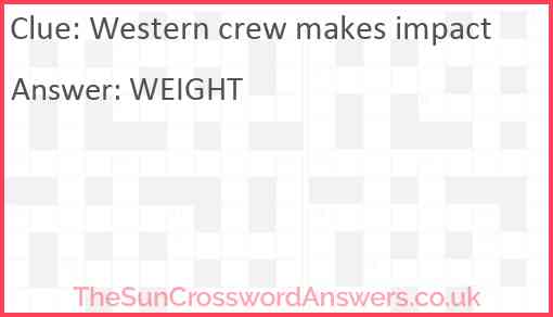 Western crew makes impact is a crossword clue for which we have 1 possible answer and we have spotted 1 times in our database. This crossword clue was last seen on 07 August 2021 in The Sun Cryptic Crossword puzzle!