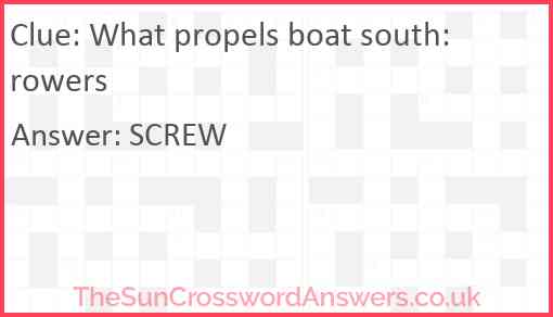 What propels boat south: rowers is a crossword clue for which we have 1 possible answer and we have spotted 1 times in our database. This crossword clue was last seen on 31 May 2020 in The Sun Cryptic Crossword puzzle!