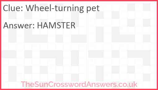 Wheel-turning pet is a crossword clue for which we have 1 possible answer and we have spotted 1 times in our database. This crossword clue was last seen on 16 December 2024 in The Sun Coffee Time Crossword puzzle!