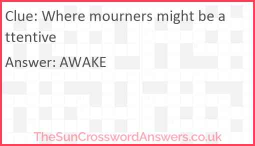 Where mourners might be attentive is a crossword clue for which we have 1 possible answer and we have spotted 1 times in our database. This crossword clue was last seen on 06 October 2024 in The Sun Cryptic Crossword puzzle!