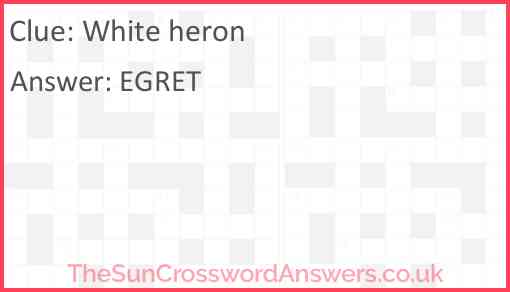 White heron is a crossword clue for which we have 1 possible answer and we have spotted 13 times in our database. This crossword clue was last seen on 12 December 2024 in The Sun Coffee Time Crossword puzzle!