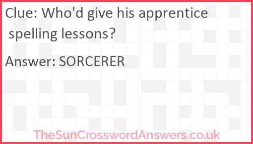 Who'd give his apprentice spelling lessons? is a crossword clue for which we have 1 possible answer and we have spotted 1 times in our database. This crossword clue was last seen on 29 November 2024 in The Sun Cryptic Crossword puzzle!