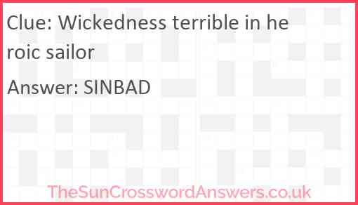 Wickedness terrible in heroic sailor is a crossword clue for which we have 1 possible answer and we have spotted 2 times in our database. This crossword clue was last seen on 28 January 2024 in The Sun Cryptic Crossword puzzle!