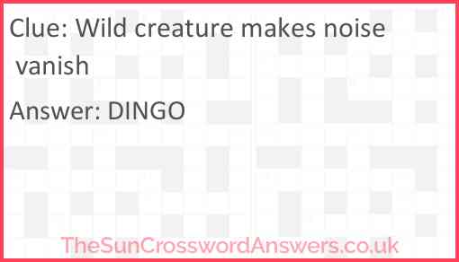 Wild creature makes noise vanish is a crossword clue for which we have 1 possible answer and we have spotted 3 times in our database. This crossword clue was last seen on 23 April 2024 in The Sun Cryptic Crossword puzzle!