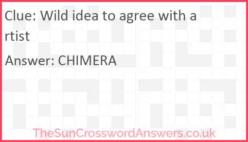 Wild idea to agree with artist is a crossword clue for which we have 1 possible answer and we have spotted 2 times in our database. This crossword clue was last seen on 25 July 2024 in The Sun Cryptic Crossword puzzle!