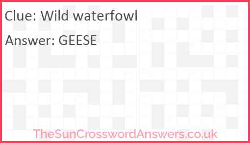 Wild waterfowl is a crossword clue for which we have 1 possible answer and we have spotted 5 times in our database. This crossword clue was last seen on 18 April 2022 in The Sun Coffee Time Crossword puzzle!
