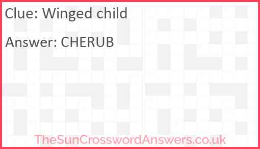 Winged child is a crossword clue for which we have 1 possible answer and we have spotted 8 times in our database. This crossword clue was last seen on 09 June 2025 in The Sun Coffee Time Crossword puzzle!