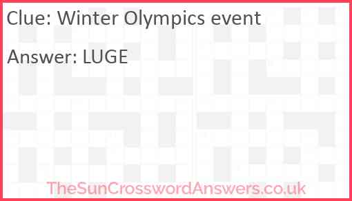 Winter Olympics event is a crossword clue for which we have 1 possible answer and we have spotted 2 times in our database. This crossword clue was last seen on 30 June 2024 in The Sun Coffee Time Crossword puzzle!