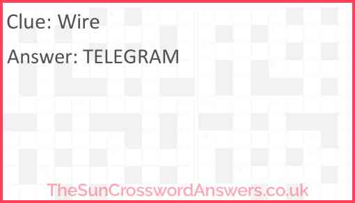 Wire is a crossword clue for which we have 1 possible answer and we have spotted 2 times in our database. This crossword clue was last seen on 02 April 2022 in The Sun Coffee Time Crossword puzzle!