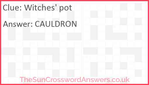 Witches' pot is a crossword clue for which we have 1 possible answer and we have spotted 1 times in our database. This crossword clue was last seen on 11 December 2020 in The Sun Coffee Time Crossword puzzle!