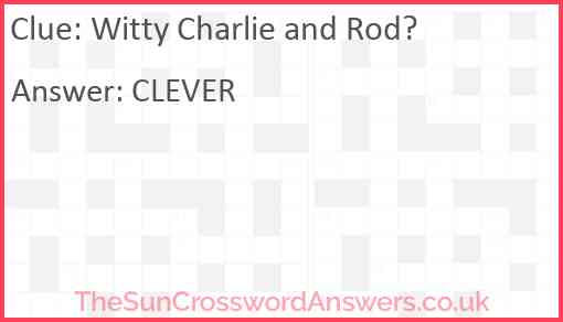 Witty Charlie and Rod? is a crossword clue for which we have 1 possible answer and we have spotted 2 times in our database. This crossword clue was last seen on 13 July 2025 in The Sun Cryptic Crossword puzzle!