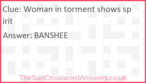 Woman in torment shows spirit is a crossword clue for which we have 1 possible answer and we have spotted 3 times in our database. This crossword clue was last seen on 10 June 2021 in The Sun Cryptic Crossword puzzle!