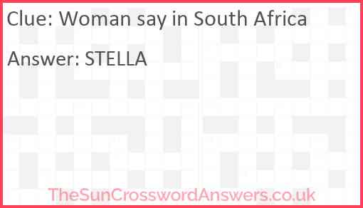 Woman say in South Africa is a crossword clue for which we have 1 possible answer and we have spotted 2 times in our database. This crossword clue was last seen on 25 May 2024 in The Sun Cryptic Crossword puzzle!
