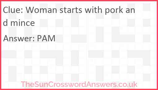 Woman starts with pork and mince is a crossword clue for which we have 1 possible answer and we have spotted 2 times in our database. This crossword clue was last seen on 27 July 2024 in The Sun Cryptic Crossword puzzle!