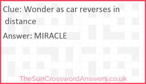 Wonder as car reverses in distance is a crossword clue for which we have 1 possible answer and we have spotted 2 times in our database. This crossword clue was last seen on 23 October 2022 in The Sun Cryptic Crossword puzzle!