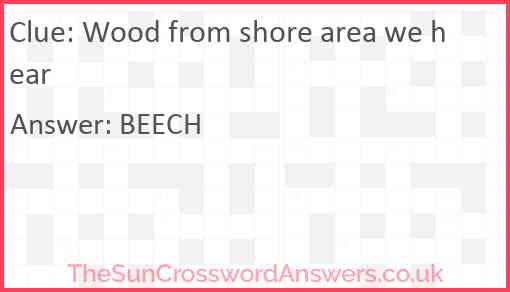 Wood from shore area we hear is a crossword clue for which we have 1 possible answer and we have spotted 2 times in our database. This crossword clue was last seen on 07 January 2025 in The Sun Cryptic Crossword puzzle!