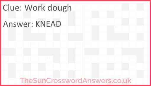 Work dough is a crossword clue for which we have 1 possible answer and we have spotted 9 times in our database. This crossword clue was last seen on 10 March 2025 in The Sun Coffee Time Crossword puzzle!