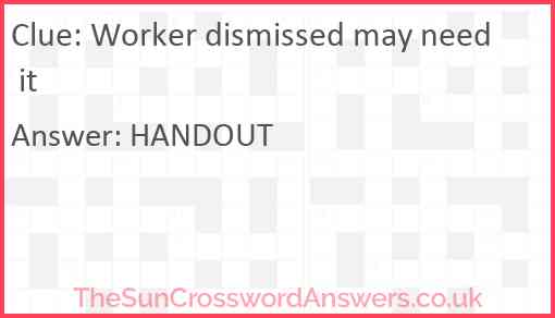 Worker dismissed may need it is a crossword clue for which we have 1 possible answer and we have spotted 2 times in our database. This crossword clue was last seen on 27 August 2023 in The Sun Cryptic Crossword puzzle!