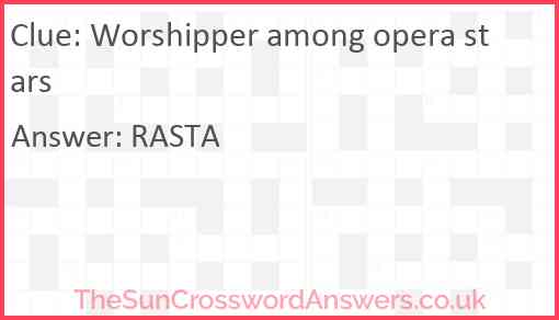 Worshipper among opera stars is a crossword clue for which we have 1 possible answer and we have spotted 2 times in our database. This crossword clue was last seen on 05 December 2024 in The Sun Cryptic Crossword puzzle!