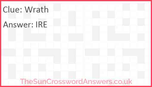 Wrath is a crossword clue for which we have 2 possible answer and we have spotted 10 times in our database. This crossword clue was last seen on 29 December 2024 in The Sun Coffee Time Crossword puzzle!