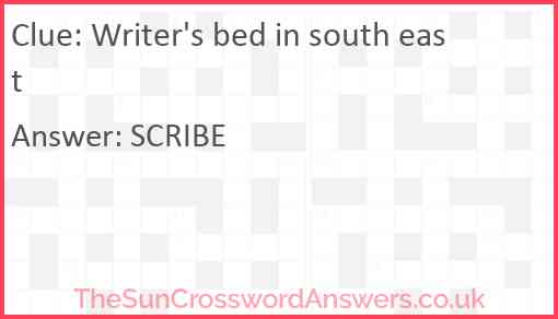Writer's bed in south east is a crossword clue for which we have 1 possible answer and we have spotted 1 times in our database. This crossword clue was last seen on 23 December 2021 in The Sun Cryptic Crossword puzzle!