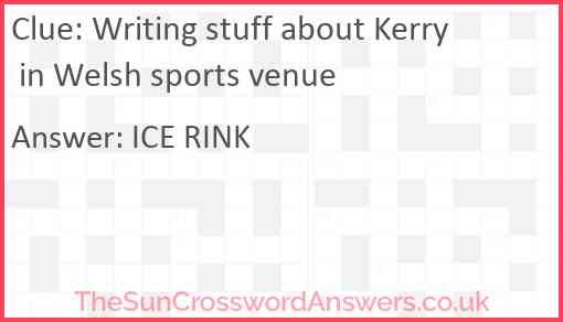 Writing stuff about Kerry in Welsh sports venue is a crossword clue for which we have 2 possible answer and we have spotted 2 times in our database. This crossword clue was last seen on 11 September 2023 in The Sun Cryptic Crossword puzzle!