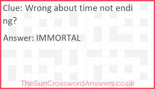 Wrong about time not ending? is a crossword clue for which we have 1 possible answer and we have spotted 2 times in our database. This crossword clue was last seen on 22 February 2022 in The Sun Cryptic Crossword puzzle!
