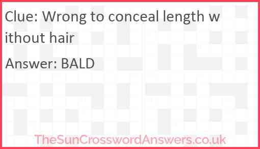 Wrong to conceal length without hair is a crossword clue for which we have 1 possible answer and we have spotted 1 times in our database. This crossword clue was last seen on 09 January 2021 in The Sun Cryptic Crossword puzzle!