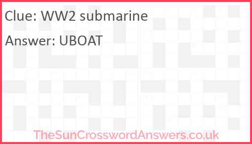 WW2 submarine is a crossword clue for which we have 1 possible answer and we have spotted 3 times in our database. This crossword clue was last seen on 24 February 2025 in The Sun Coffee Time Crossword puzzle!