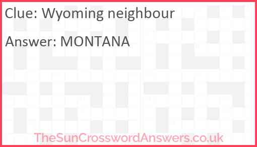 Wyoming neighbour is a crossword clue for which we have 1 possible answer and we have spotted 1 times in our database. This crossword clue was last seen on 18 December 2024 in The Sun Coffee Time Crossword puzzle!