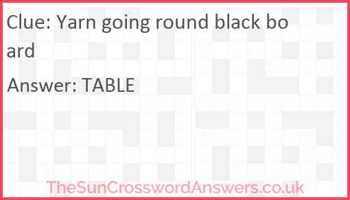 Yarn going round black board is a crossword clue for which we have 1 possible answer and we have spotted 2 times in our database. This crossword clue was last seen on 27 April 2023 in The Sun Cryptic Crossword puzzle!