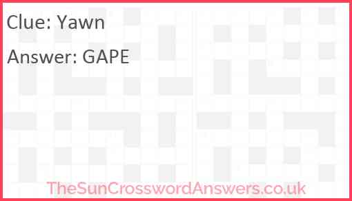 Yawn is a crossword clue for which we have 1 possible answer and we have spotted 4 times in our database. This crossword clue was last seen on 26 May 2025 in The Sun Coffee Time Crossword puzzle!