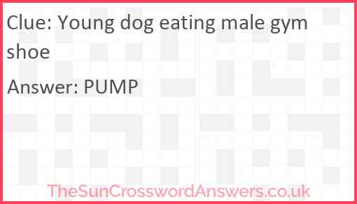 Young dog eating male gymshoe is a crossword clue for which we have 1 possible answer and we have spotted 2 times in our database. This crossword clue was last seen on 16 March 2025 in The Sun Cryptic Crossword puzzle!