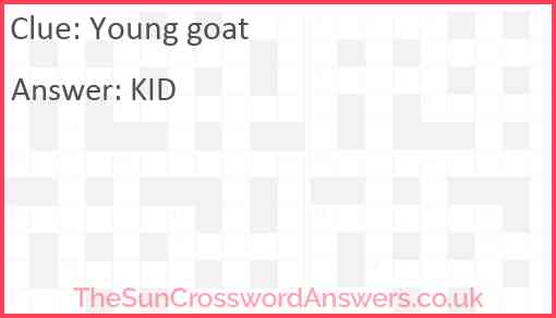 Young goat is a crossword clue for which we have 1 possible answer and we have spotted 4 times in our database. This crossword clue was last seen on 26 April 2023 in The Sun Coffee Time Crossword puzzle!