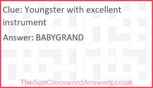 Youngster with excellent instrument is a crossword clue for which we have 1 possible answer and we have spotted 1 times in our database. This crossword clue was last seen on 12 February 2022 in The Sun Cryptic Crossword puzzle!
