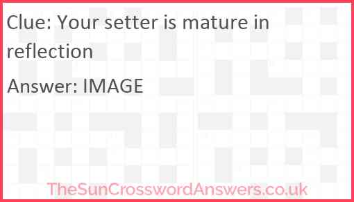 Your setter is mature in reflection is a crossword clue for which we have 1 possible answer and we have spotted 2 times in our database. This crossword clue was last seen on 10 September 2024 in The Sun Cryptic Crossword puzzle!