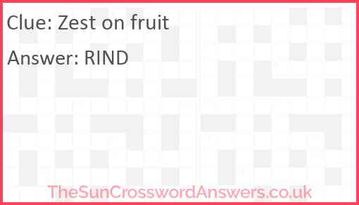 Zest on fruit is a crossword clue for which we have 1 possible answer and we have spotted 2 times in our database. This crossword clue was last seen on 18 April 2023 in The Sun Coffee Time Crossword puzzle!